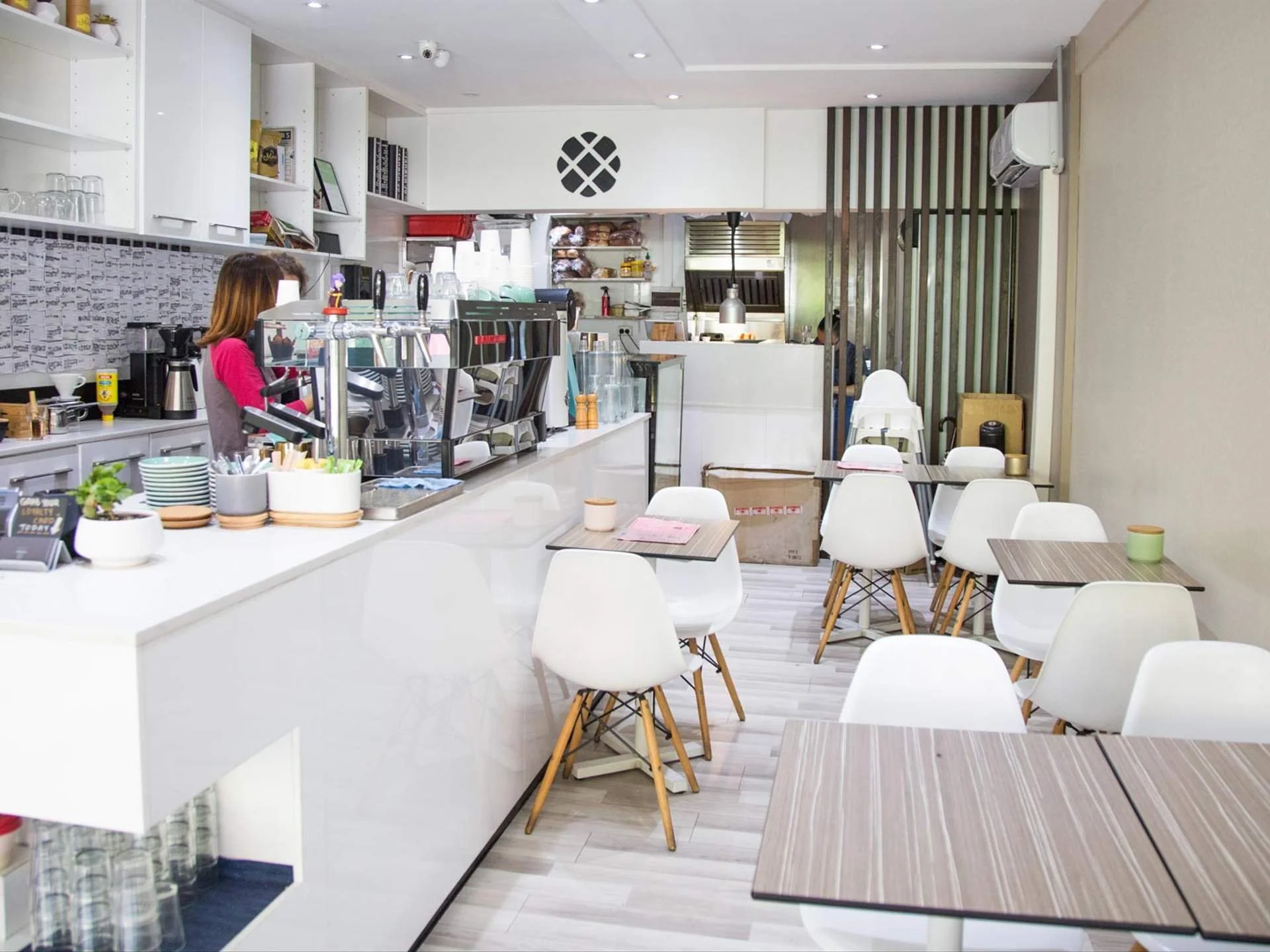 The shop opened in 2016 after co-owners Quinton Ng and Samuel Lee — who had had both been working in the hospitality industry for years — decided that it was time to run their own place. The cafe's name is representative of the owner's identities; Ng's family hails from both Hong Kong and Australia, while Lee is Korean–New Zealander. Designed with minimalism in mind, customers can order at the white marbled counter where there are maybe 100 stamped loyalty cards — a testament to the quality of the coffee on offer, and the number of return customers. Seating is available both inside and out, which is a perfect perch from which to people-watch during the lunch hours, which are less hectic than the mornings.