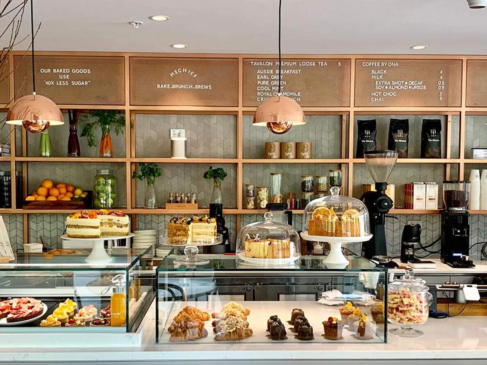 Owner and operator Adelle Ly quit the corporate world and decided to create delicious and healthy food. The aptly titled Mschief is known for serving up all manner of tasty treats that are both lower in sugar and extremely decadent. This is evident in the arrangement of the glass counter, which showcases a number of beautiful cakes, tarts and pastries fulfilling both categories.